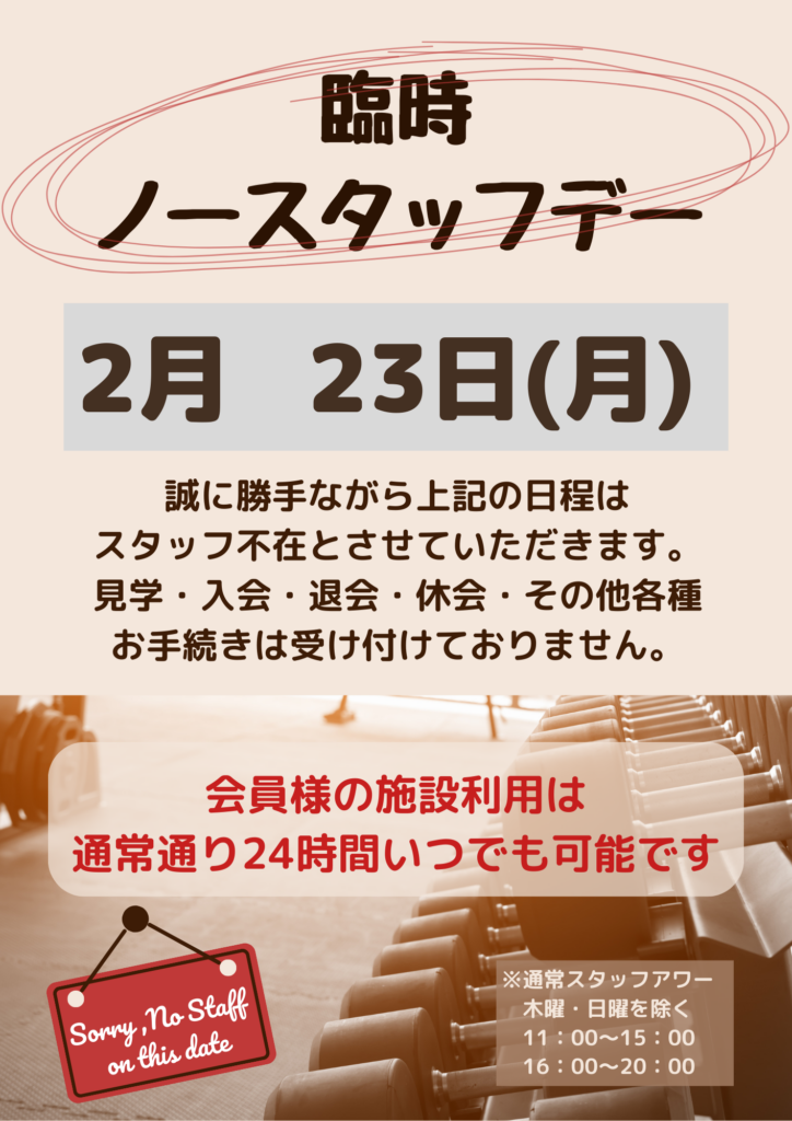 | スタッフ常駐日 | 日曜日・木曜日以外はスタッフ在籍しております。 |