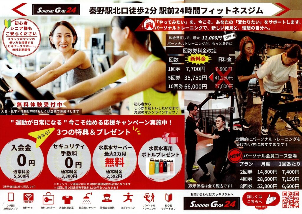 SUKKIRIGYM24は「毎日でも通いたくなるジム」を目指し、会員様にとって運動が免疫力アップにつながり、日常の一部になるよう全力でサポートさせていただきます。